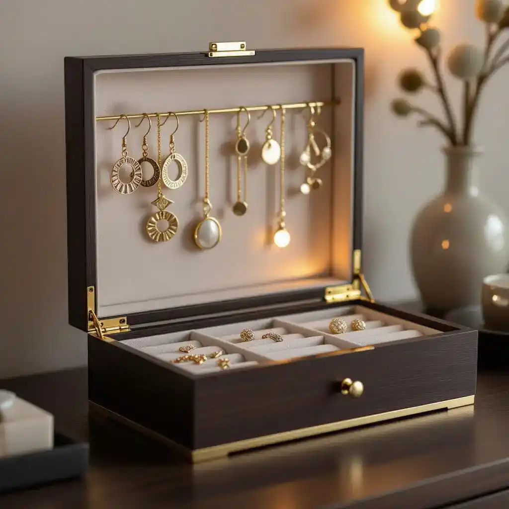 When it comes to small bedroom storage, not everything needs to be hidden away. Some items, like jewellery and accessories, can be stylishly displayed while remaining organised. These pieces can even become decorative elements that add personality to your room. For example, a simple metal frame with a screen is an ideal way to hang your favourite earrings and necklaces, keeping them neat, accessible, and adding a touch of charm to your space. This storage solution not only maximises space but also contributes to the overall design, making it one of the perfect small bedroom ideas for blending function with style.