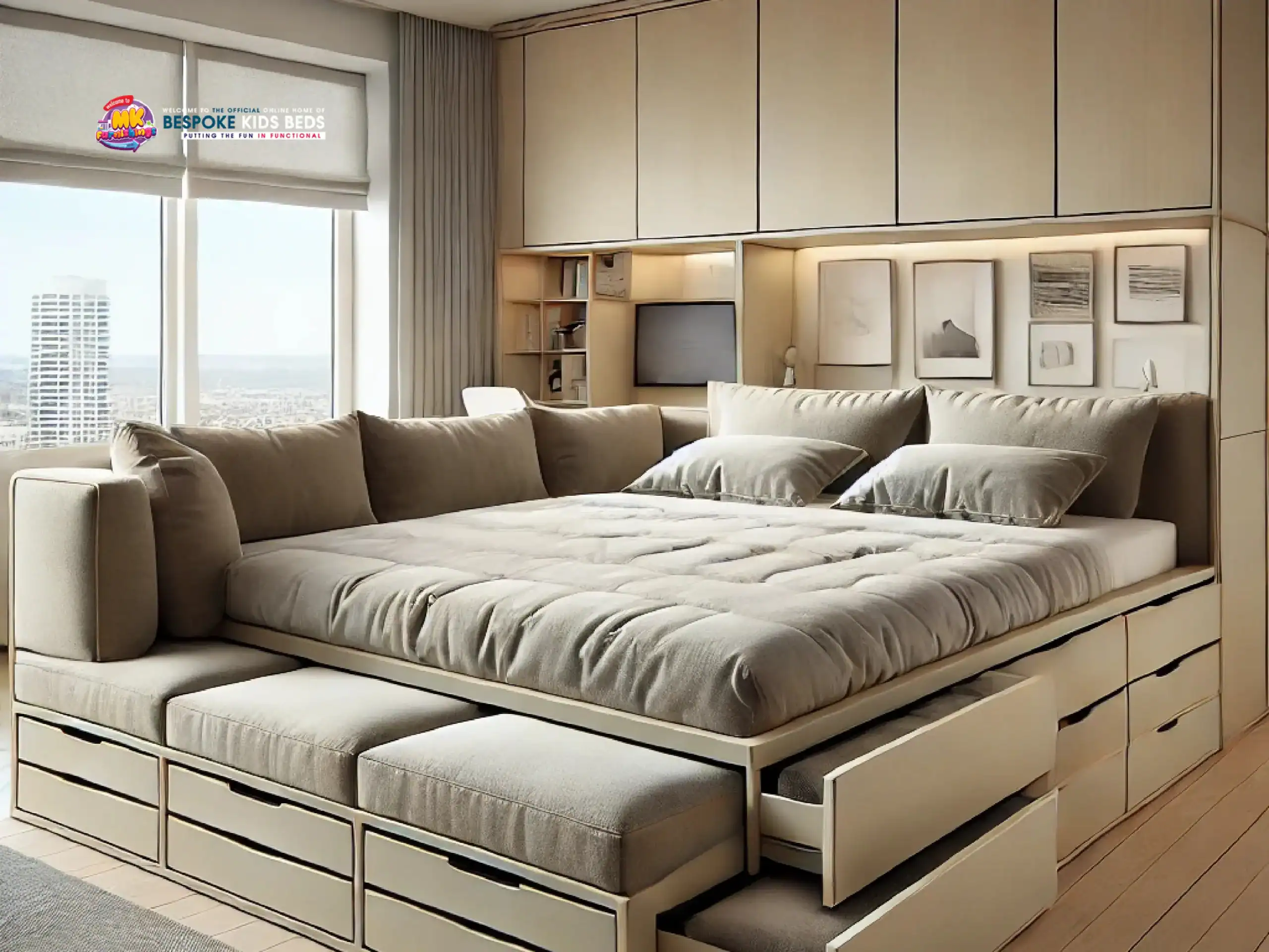 For small bedrooms, multifunctional beds are a perfect storage solution to maximise both comfort and storage. Beds with built-in drawers or shelves underneath allow you to store extra bedding, shoes, clothes, or personal items right beneath the bed. By combining a sleeping area with a much-needed storage unit, they help clear up valuable space while providing all the comfort you need. Multifunctional beds bring the dual benefits of space-saving and organisation, making them a top choice for any small room.