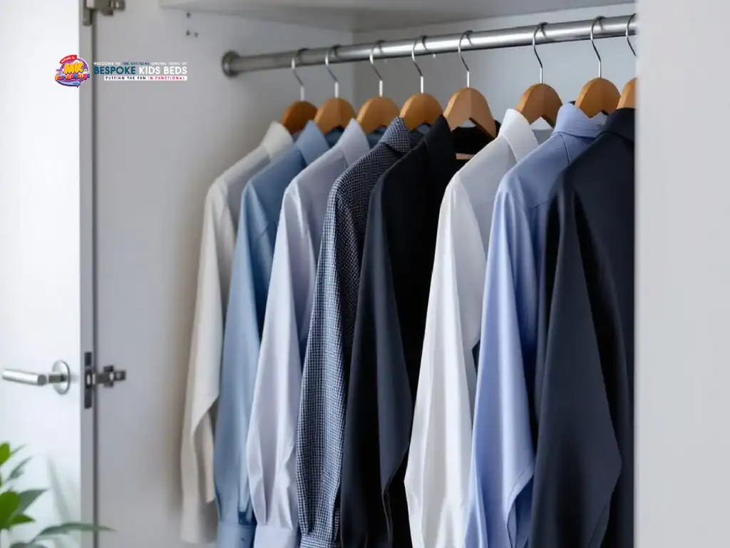 Slim and adjustable closet rods are a must-have for maximising closet space in smaller rooms. These rods are perfect for hanging clothes in narrow or compact closets, offering adjustable height to accommodate various clothing types. By adding slim, adjustable rods to your closet, you can create more hanging space and stay organised without taking up too much room. They are perfect wardrobe ideas that support a storage solution for efficiently using every inch of your closet.