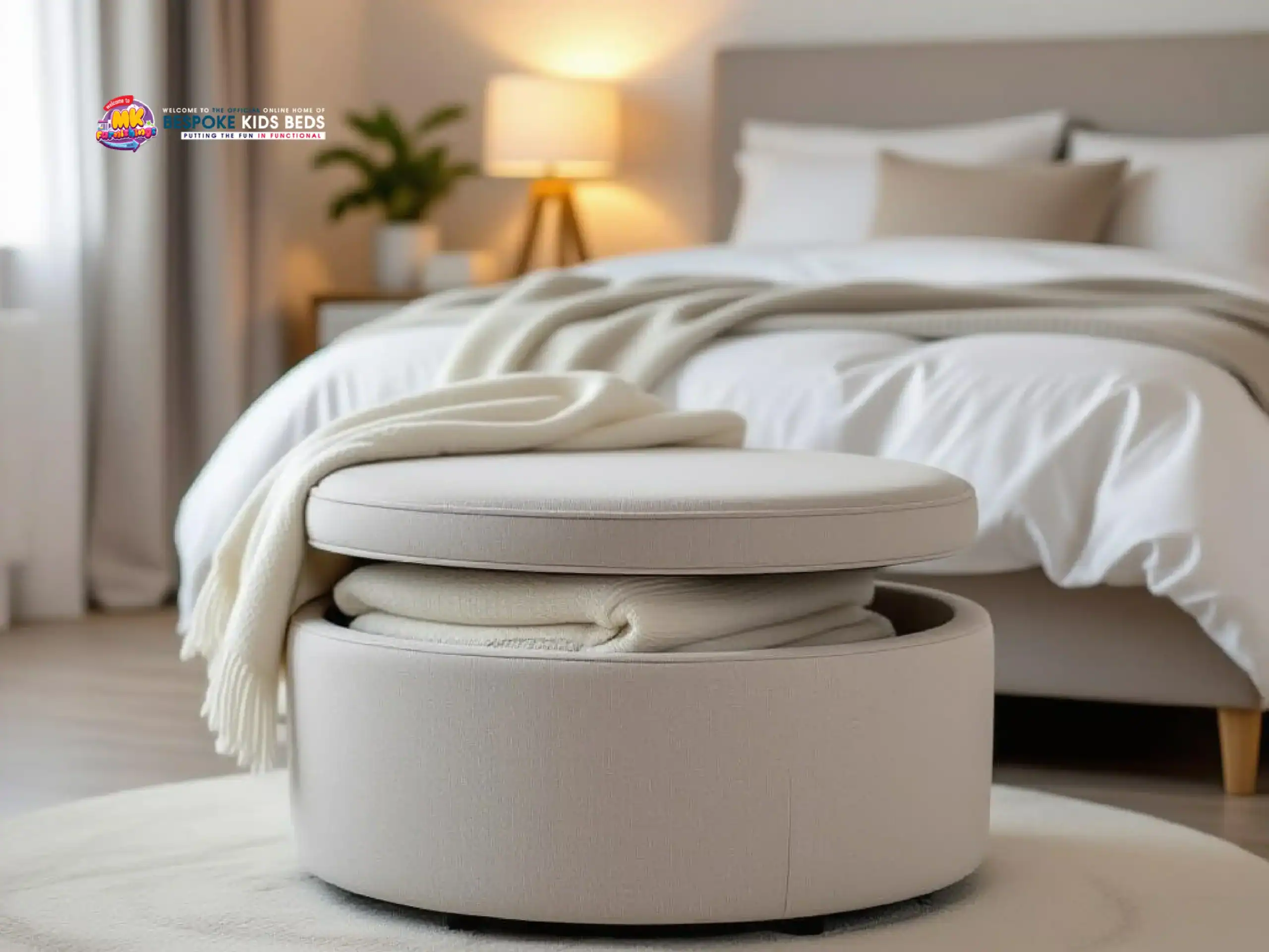 Storage ottomans with hidden compartments, like an ottoman bed, are a versatile addition to any small bedroom. These multifunctional pieces not only provide extra seating but also offer a discreet storage solution for items like blankets, pillows, or out-of-season clothing. With a lift-up lid or hidden compartments, they allow you to store things out of sight, helping to keep your room neat and organised. Unlike open storage options, everything stays tucked away and dust-free, creating a clean and streamlined look. Storage ottomans are perfect for small bedrooms, serving as both a practical storage solution and a stylish piece of furniture.