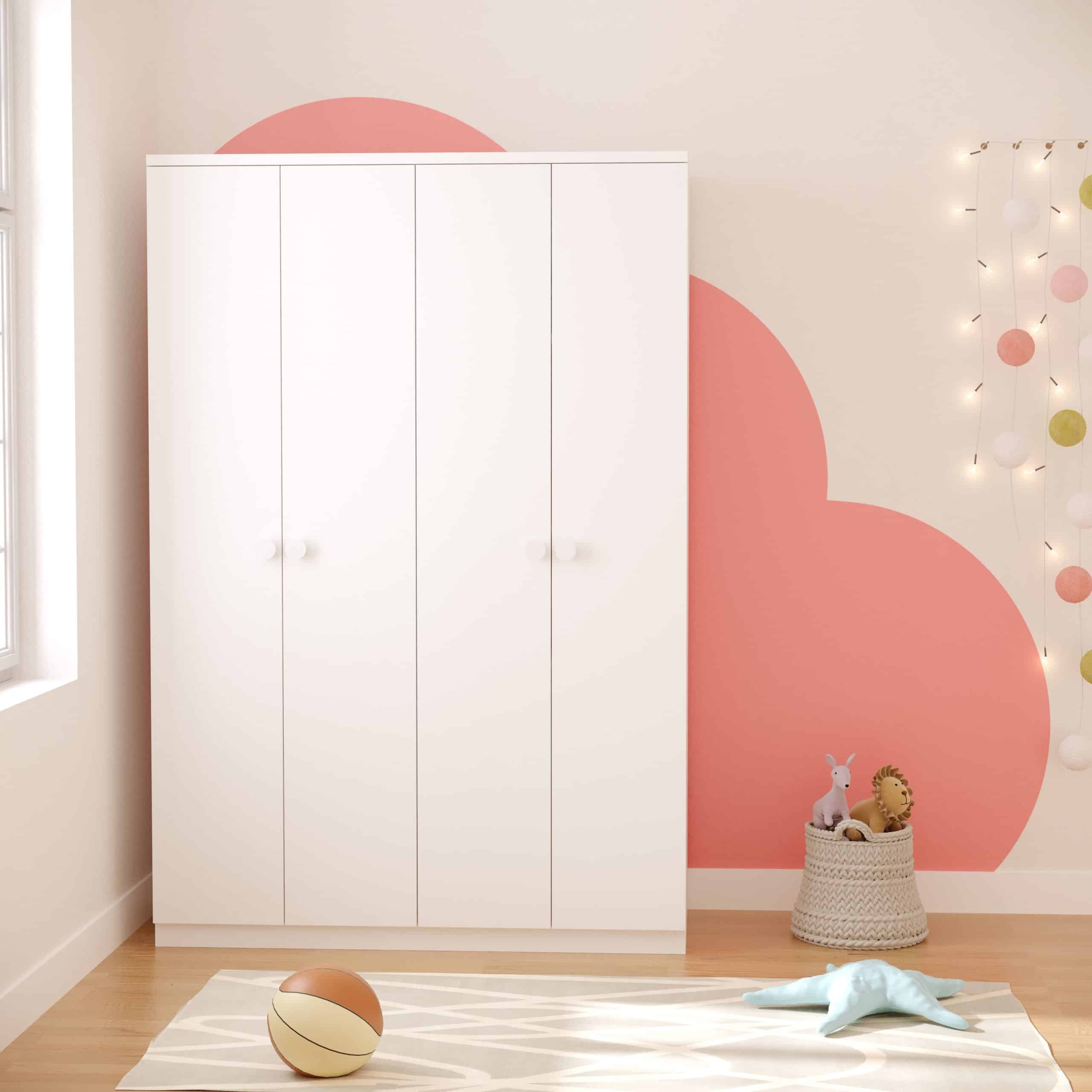 Shop MK Furnishing’s kids four door storage wardrobe with drawers, the ideal solution for parents looking to keep their child’s bedroom neat, stylish, and well-organised. Designed to reduce clutter and maximise space, this beautifully made children’s wardrobe combines practicality, safety, and modern design to suit any home.