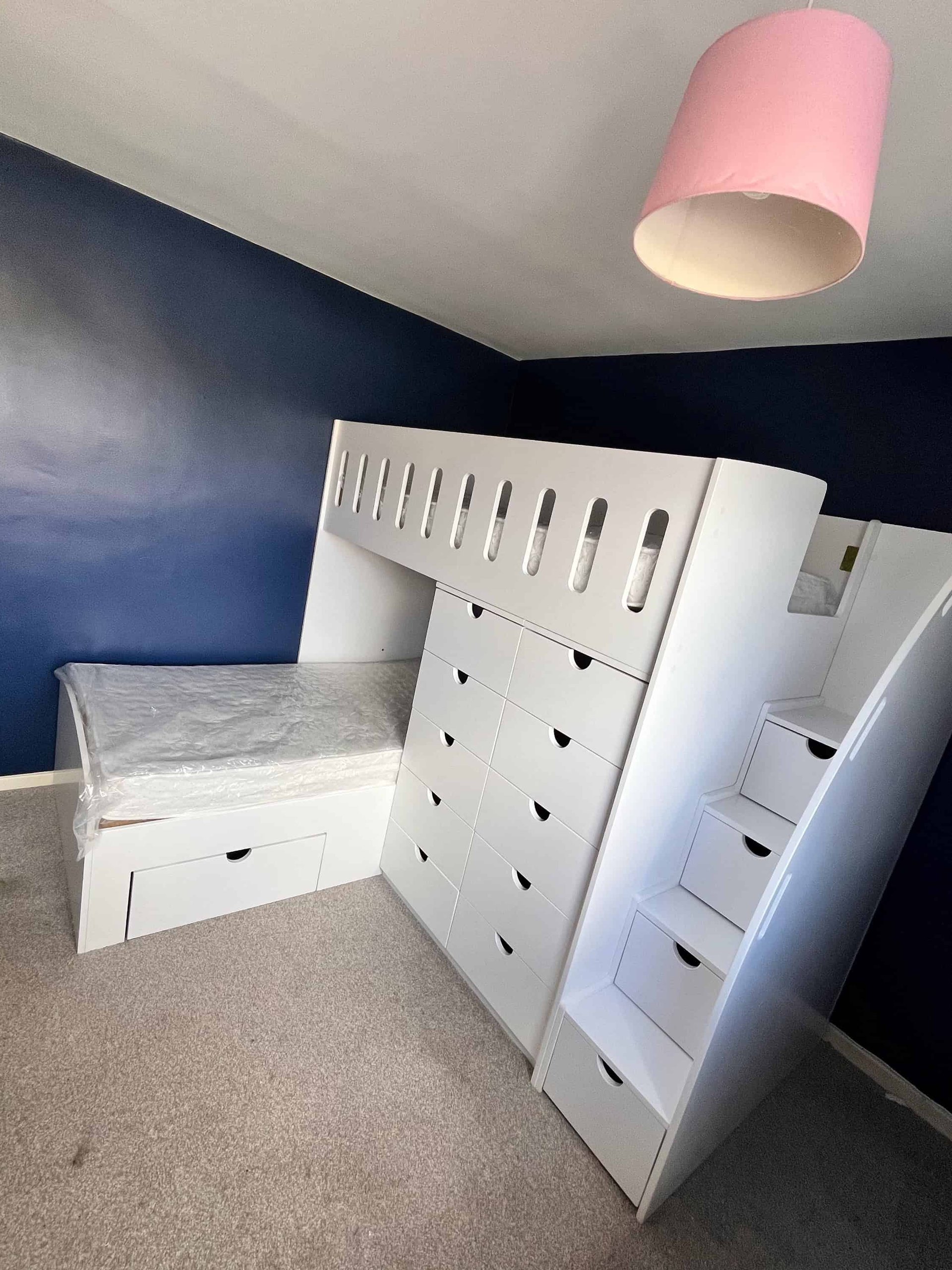 Shop our l shaped bunk with 14 drawers to create the perfect corner l shaped bunk with 14 drawers for your child’s room. With finance options available through Klarna, purchasing this bed is as easy as it is practical.