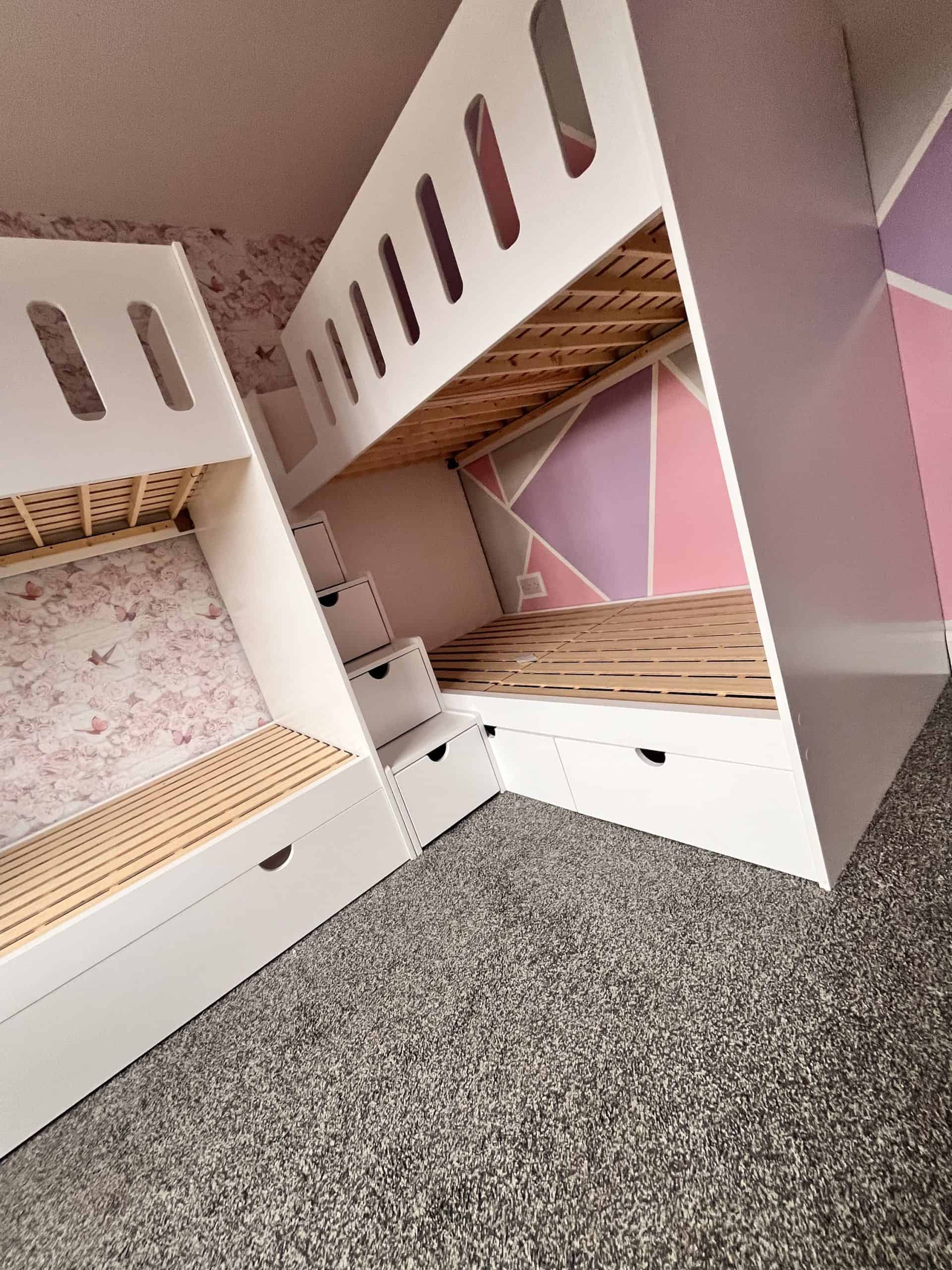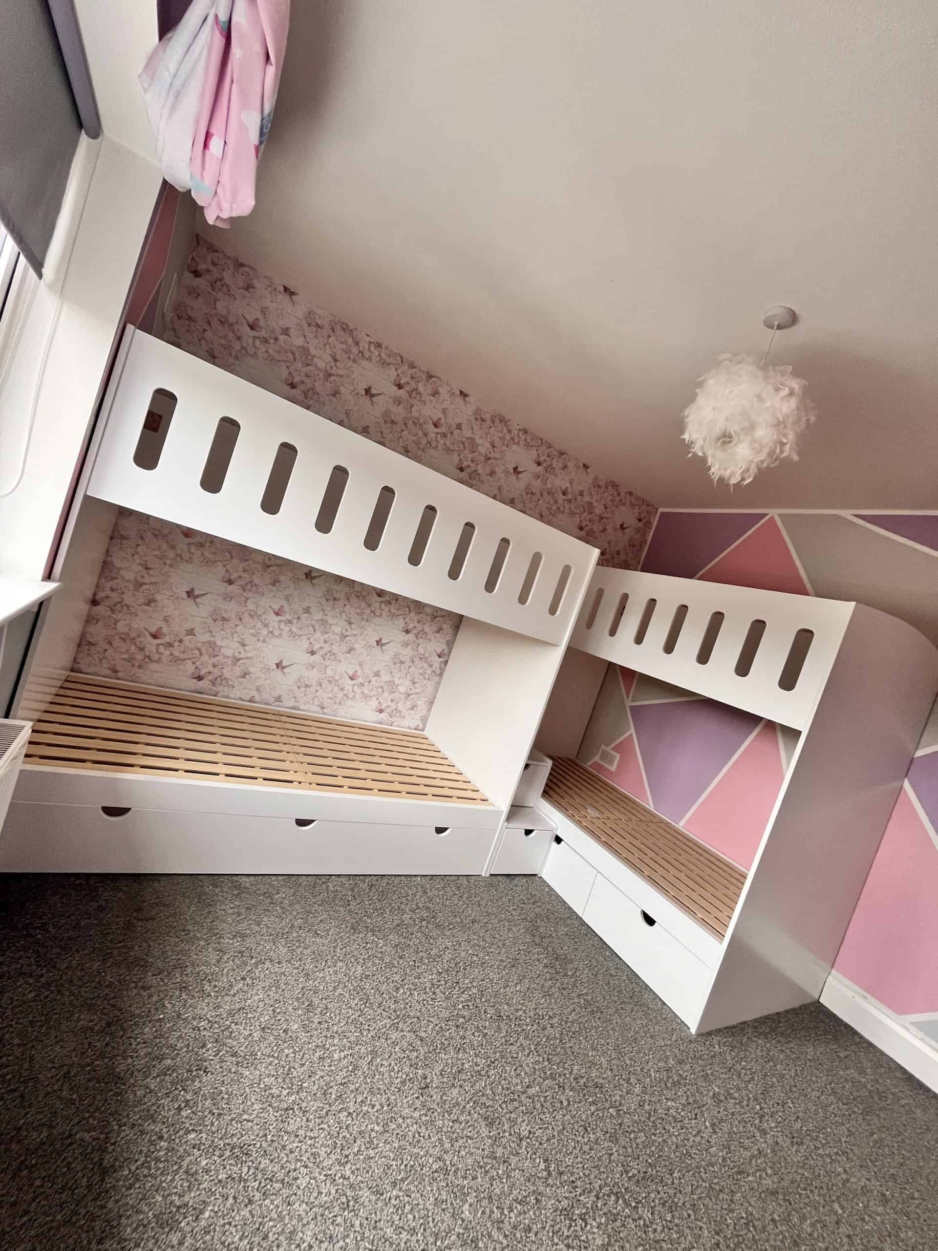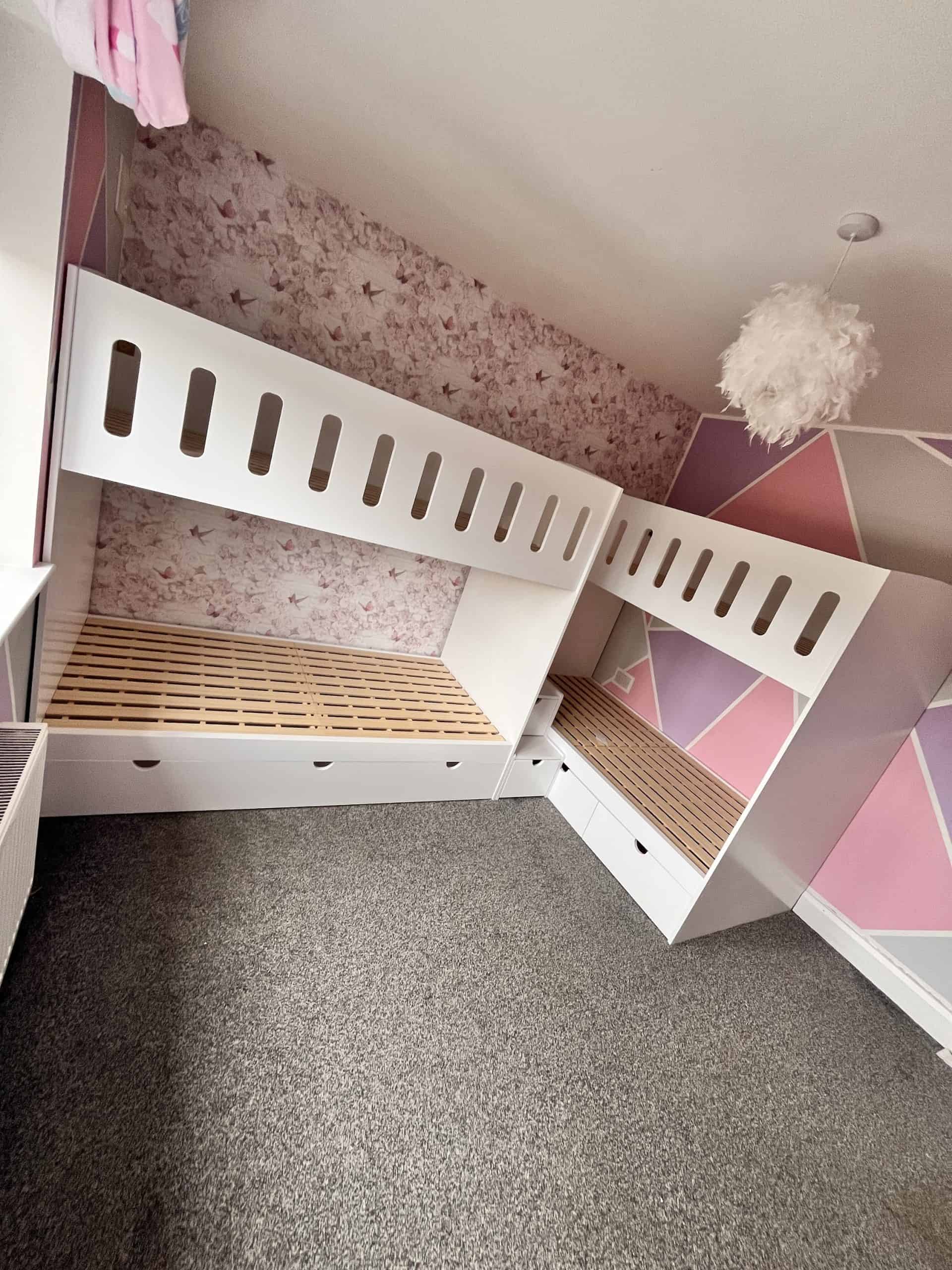 Shop our L Shaped Quad Bunk Bed today and transform your child’s room into a practical yet magical space. With financing options available from Klarna, purchasing this bed is easier than ever. Make the most of your space with the corner l shaped quad bunk bed, perfectly suited for growing families.