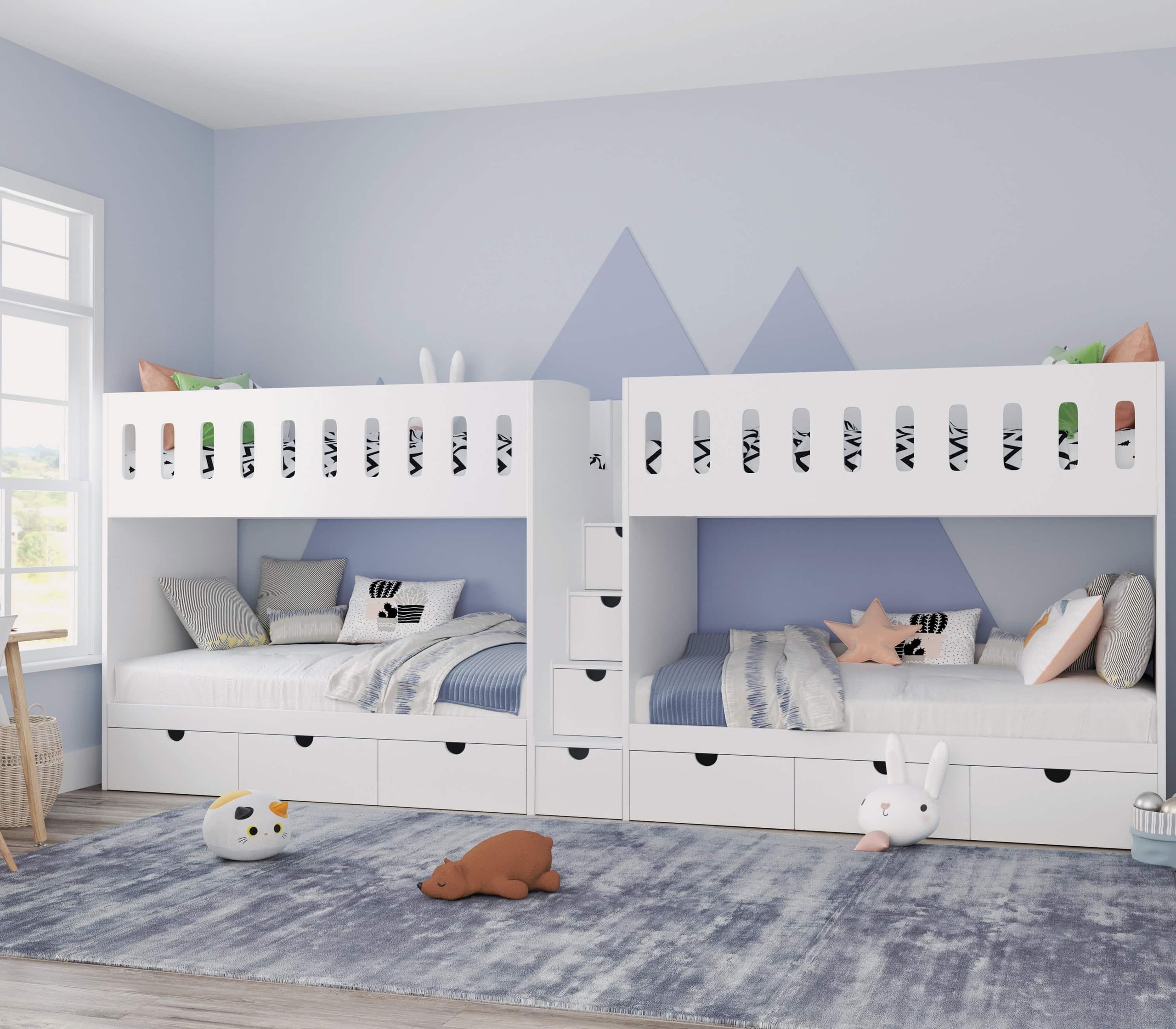 Safety is paramount in any child’s furniture, and the Quad Bunk Bed excels here. It features anti-slip stairs, robust guardrails, and an optional stairgate, all compliant with European Standard EN747-1 and EN747-2 of 2012, ensuring your child’s safety at all times.