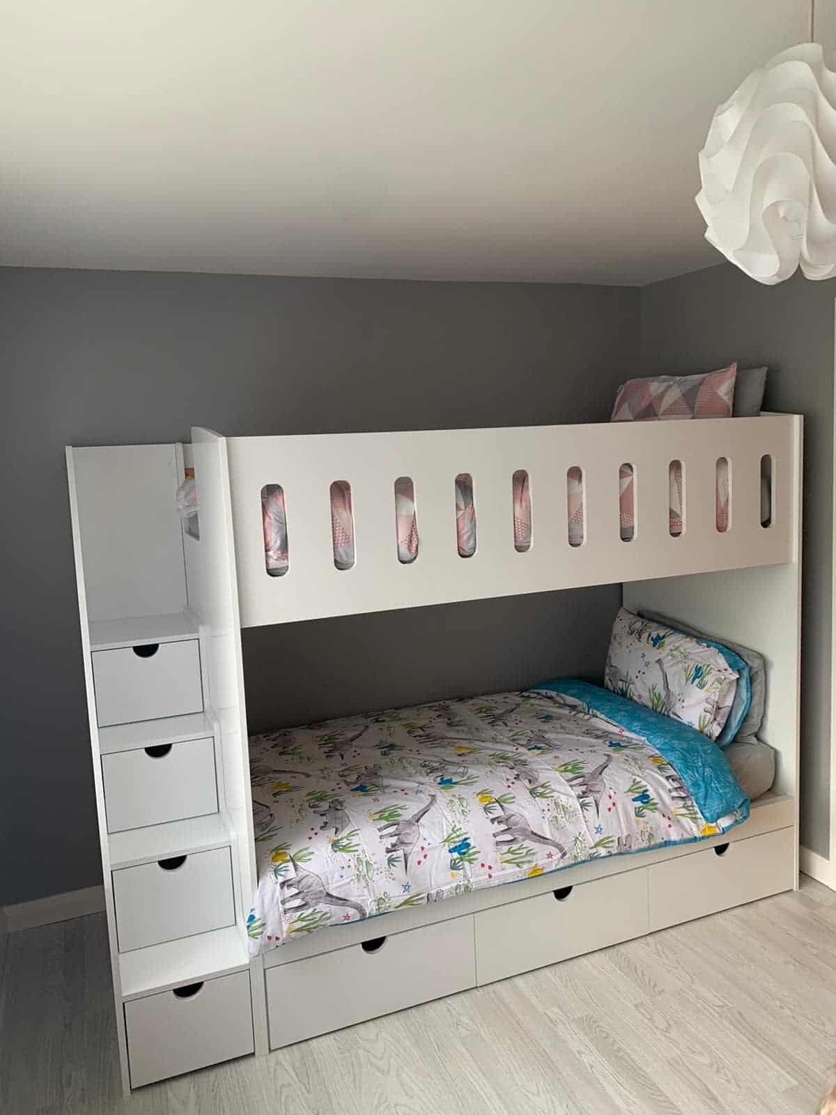 Customise the bunk bed with a range of drawer colours including White, Blue, Red, Grey, and several more. Add personal touches with optional vinyl names and enjoy the freedom to choose from various cutout designs to match your child’s personality and room decor.