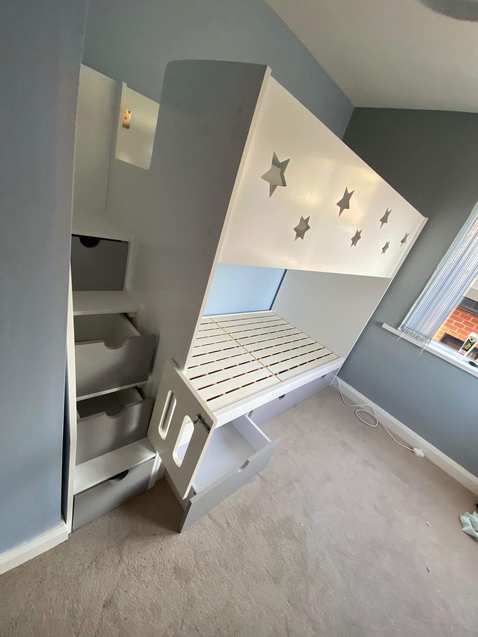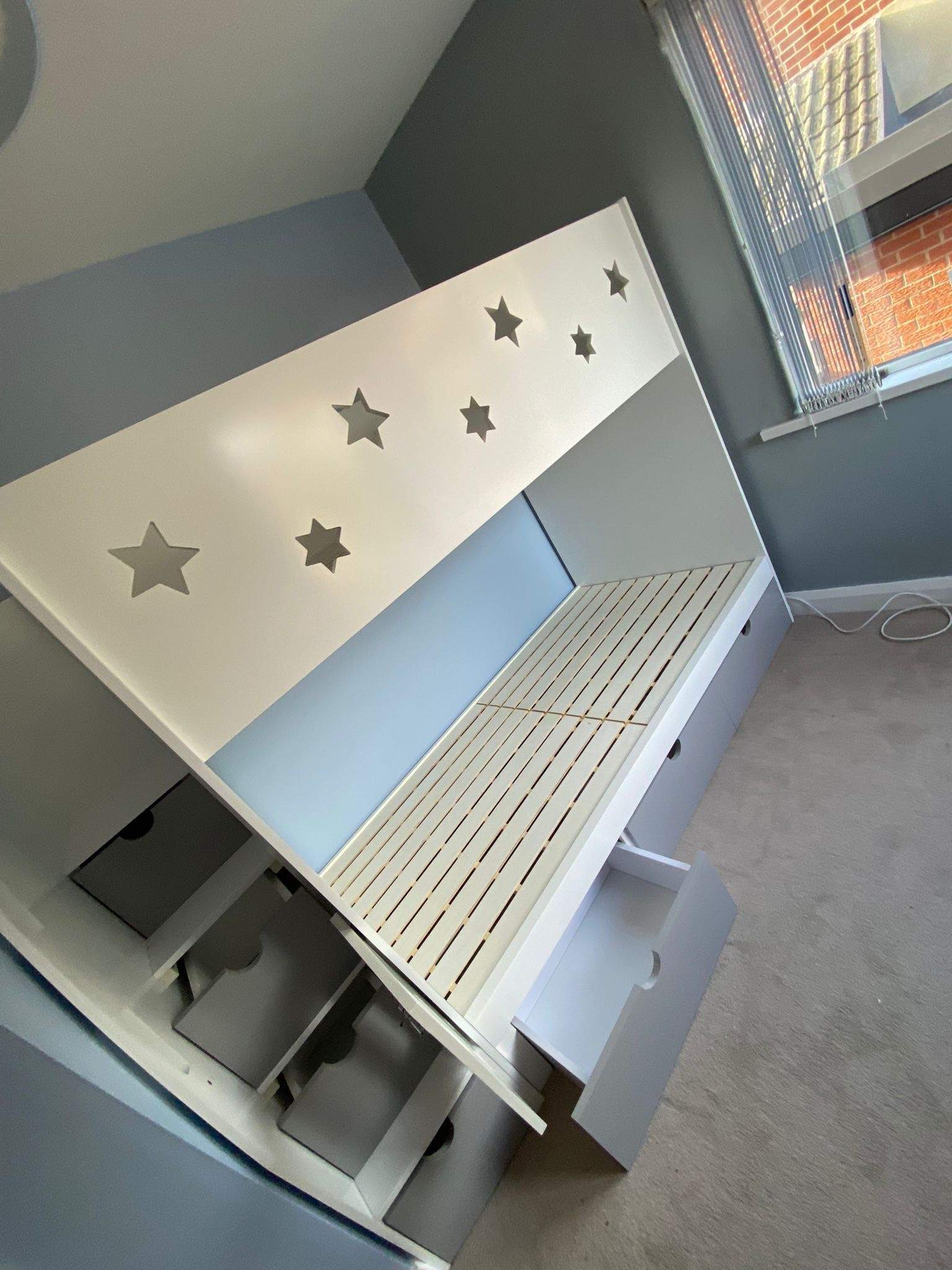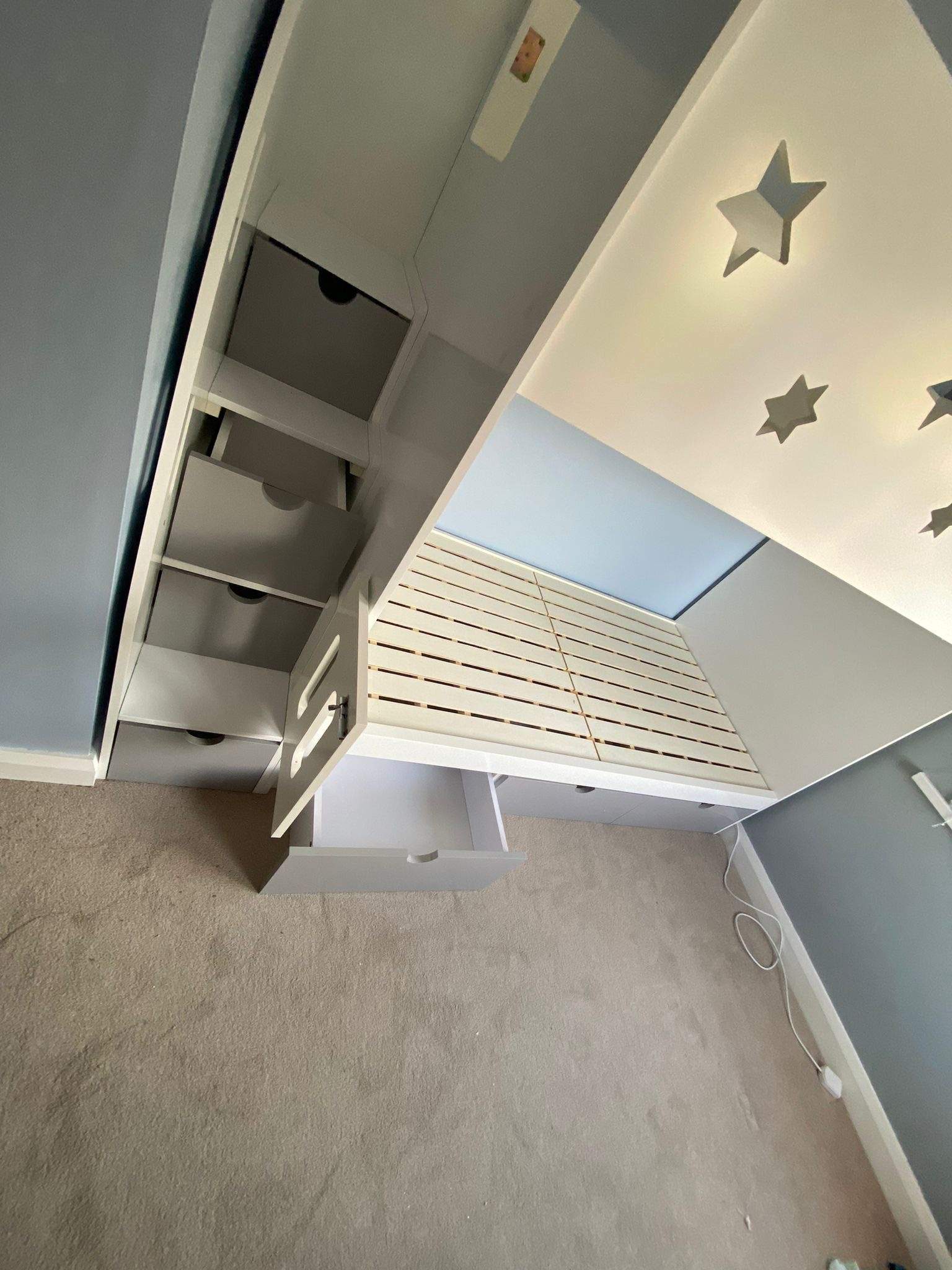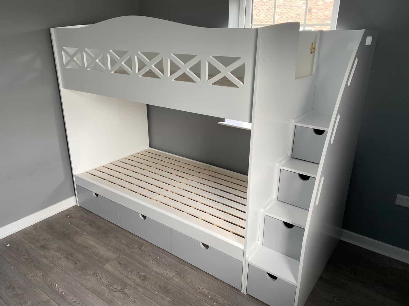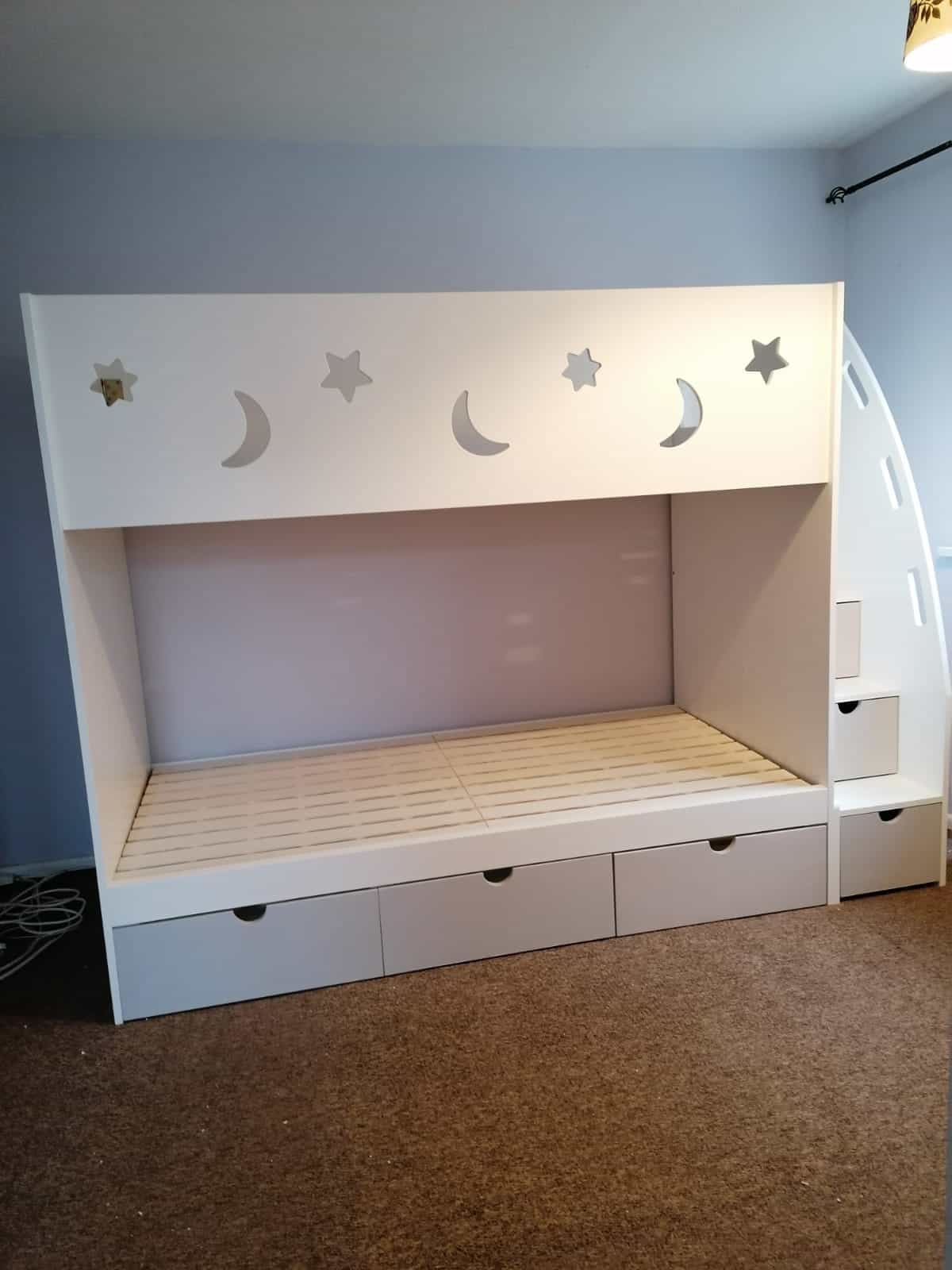The Single Bunk With Stars includes multiple storage options to keep your child’s room tidy and organised. It features staircase drawers and an optional under-bed storage, along with a possible long shelf for books or toys.